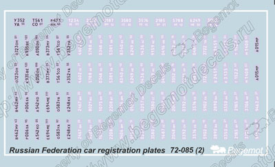 Декаль с регистрационными номерами машин Российской Федерации всех типов, возможность набрать любой сущетсвующий номер любого типа и любого региона. В комплект входит один листа деколи стандартного размера и один лист деколи маленького размера и инструкция на 1м листе формата А4.