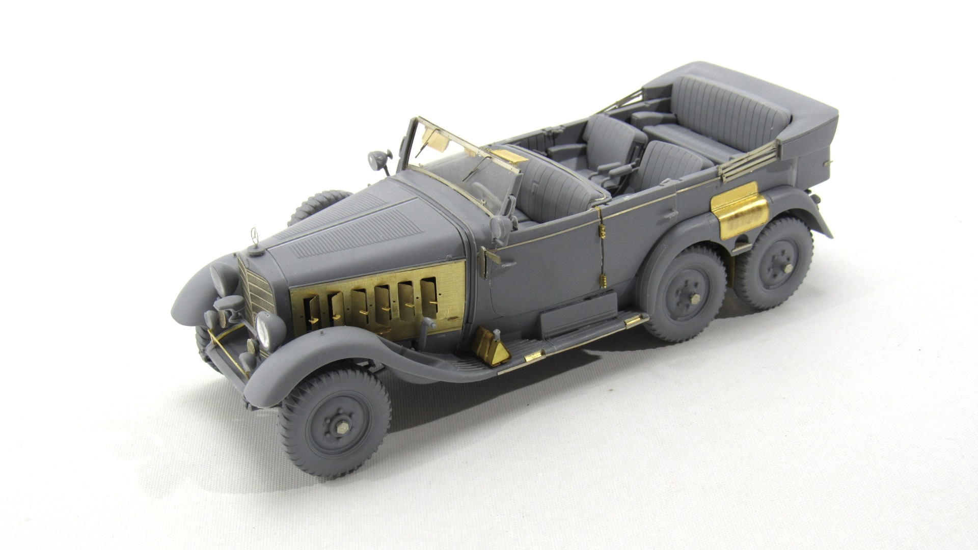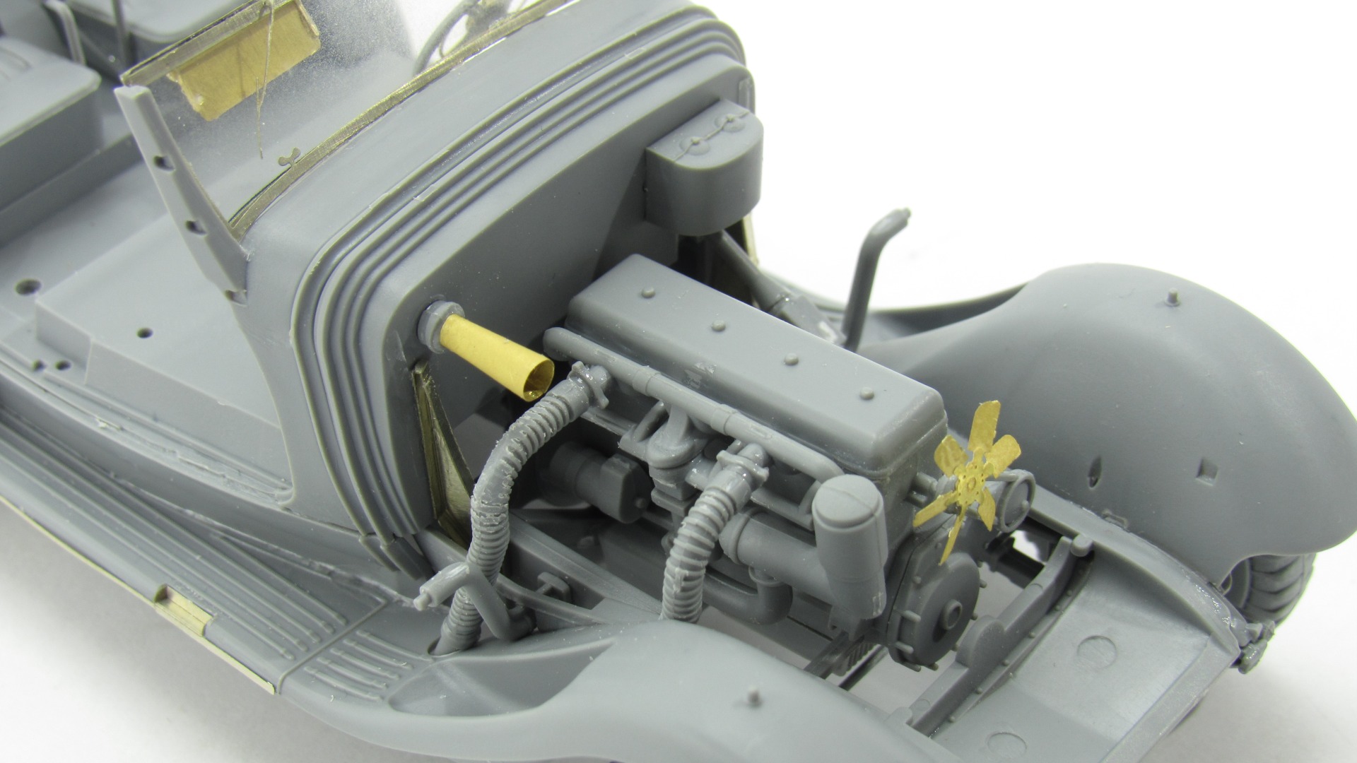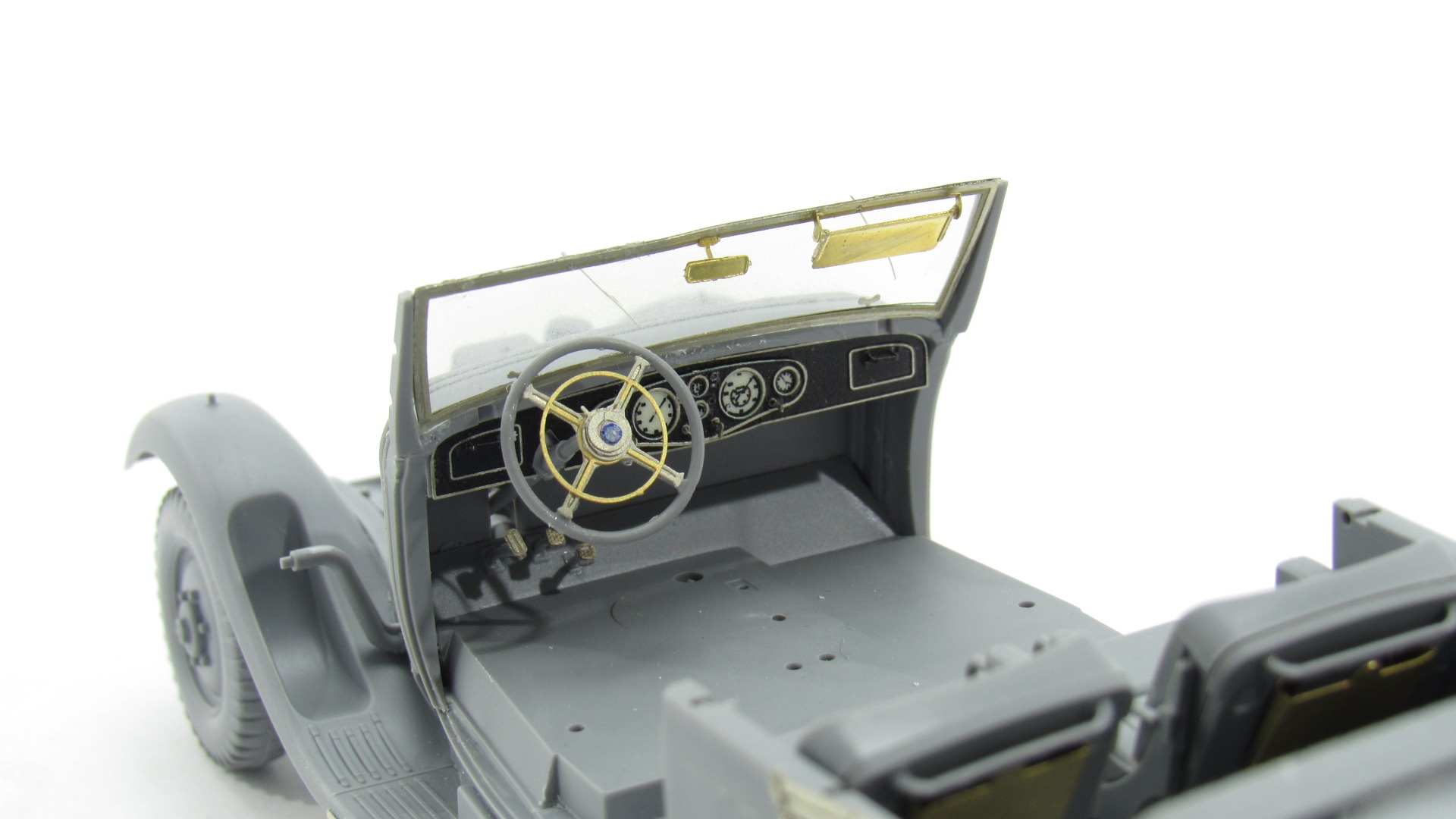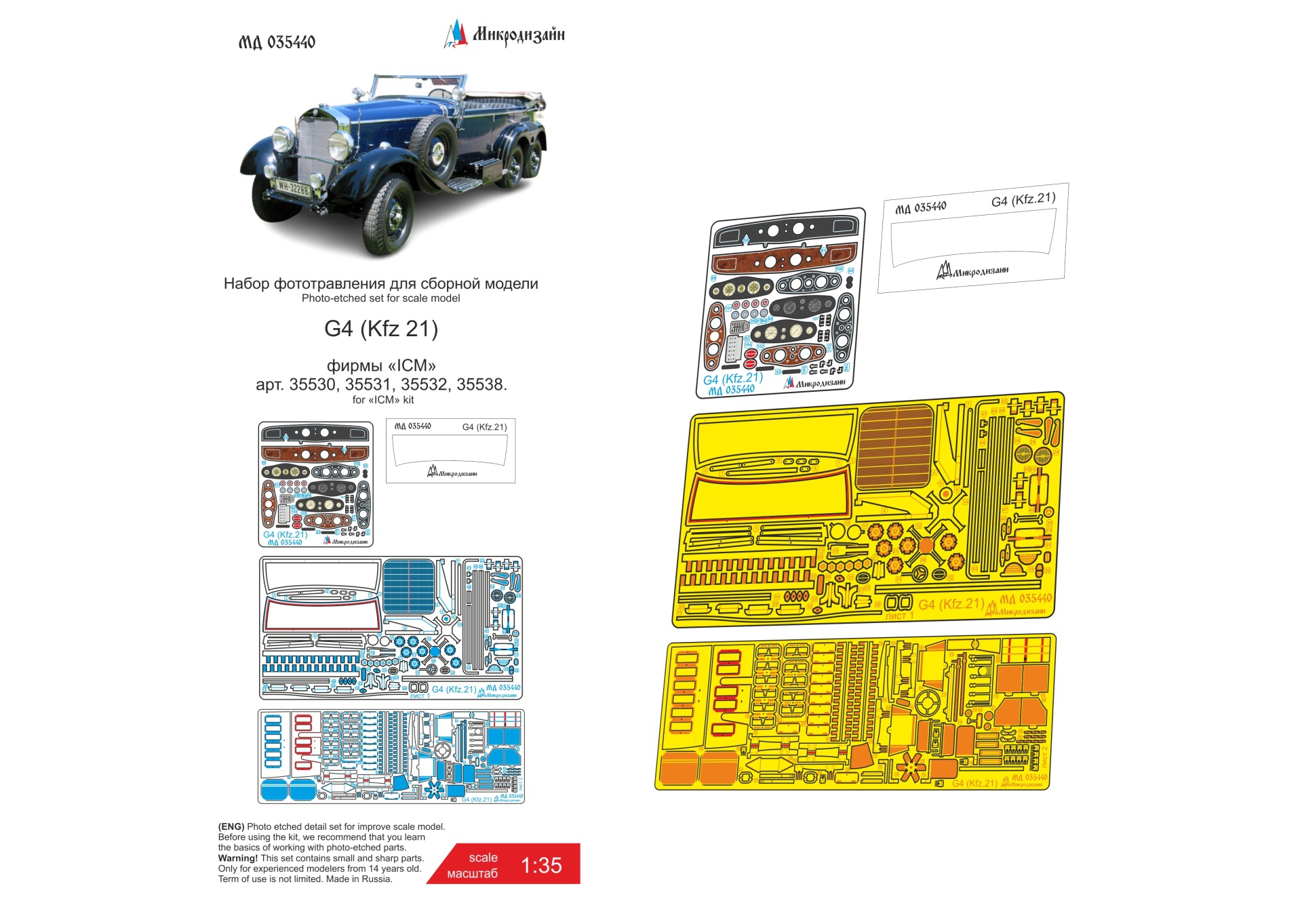 Набор фототравления G4 от ICM. Масштаб 1:35. Материал: латунь 0,15 мм, мельхиор 0,15 мм. Набор комплектуется 3 платы фототравления (в том числе цветная плата на 3 варианта приборных досок, мельхиоровые семки и отделка кузова) и цветной инструкцией. Количество уникальных деталей:87 шт. Уровень сложности - средний.