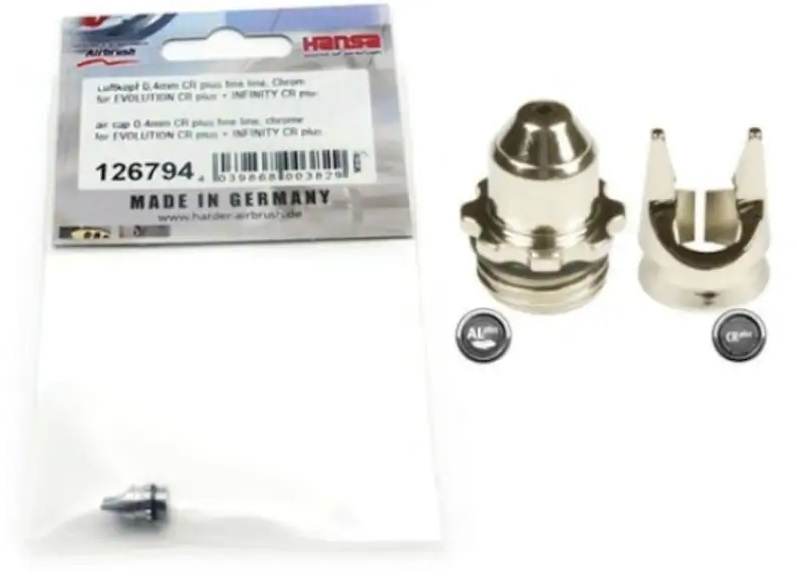 Воздушная головка, диаметр 0.4 мм. Хромированная воздушная, головка диаметр 0.4 мм. Подходит для аэрографов Evolution CR plus + Infinity CR plus. В комплекте защитный колпачок.