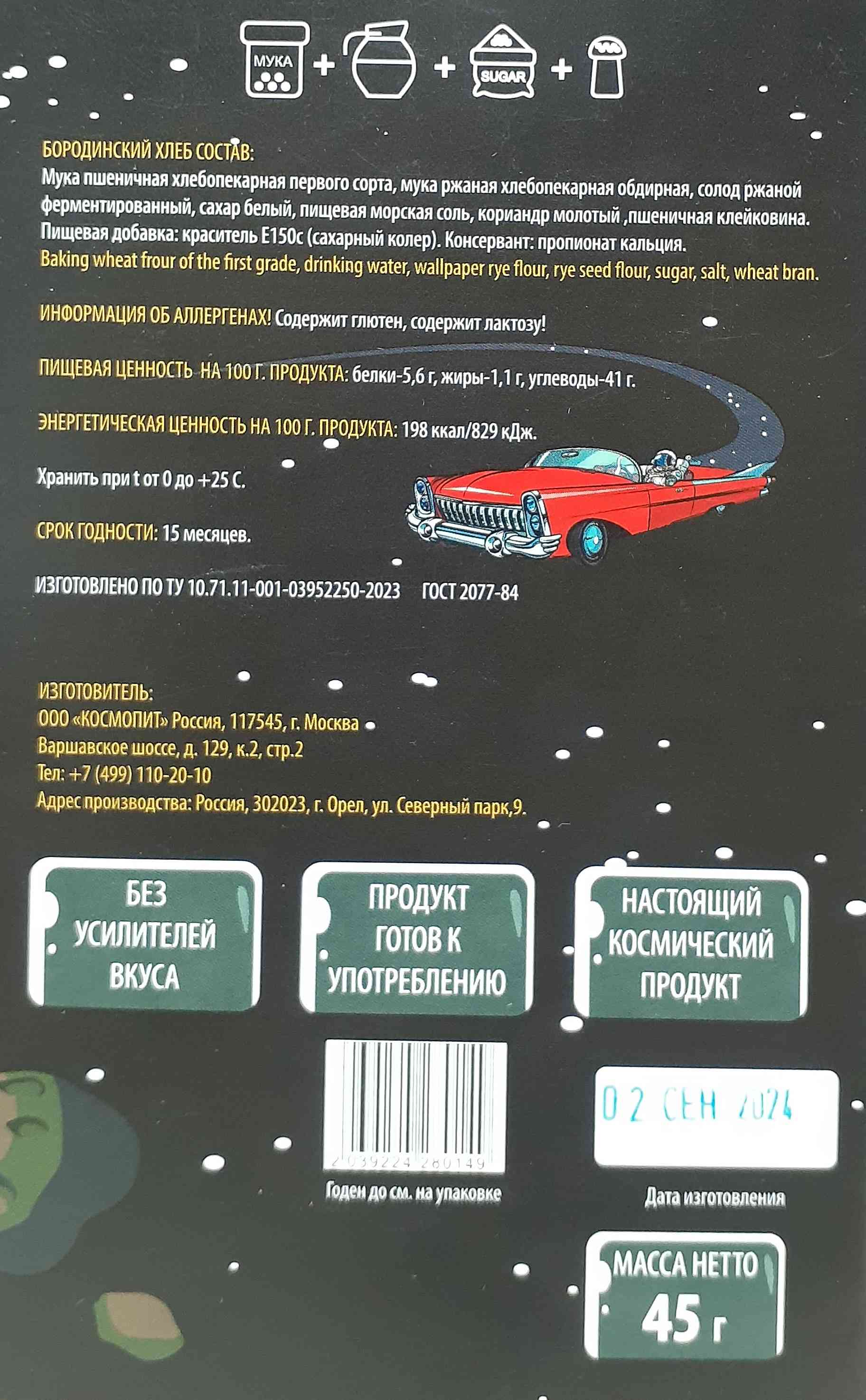 9000048 Космический хлеб, 45г., в инд. упаковке