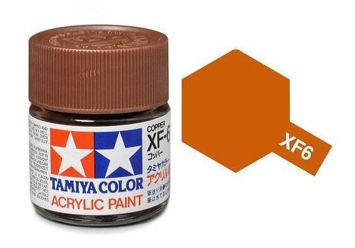 Основа - Водоразбавляемая акриловая краска Цвет - Медь, металлик (Copper) Вид - Матовый (Flat) Назначение - Основной цвет Объём - 10 мл. Готовые для покраски кистью. Могут смываться водой до высыхания. При покраске аэрографом их можно не разбавлять растворителем (Х-20А) или разбавлять в соотношении 2 (части краски) : 1 (часть разбавителя).