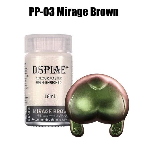 Эмалевая перламутровая краска премиального качества от DSPIAE. Визуальный эффект зависит от цвета поверхности, на которую наносится краска, от пропорций разбавления и от количества нанесённых слоёв. Прекрасно подходит для окраски остекления автомобилей, авиации и танковых смотровых приборов(триплексов) с последующей полировкой и покрытием глянцевым лаком. Для наилучшего результата рекомендуется наносить аэрографом. Разбавлять в пропорции 1:2-3 (краска:разбавитель). Рекомендуется использовать такие разбавители как: DSPIAE - T-1, T-2, T-1(Mini), T-2(Mini); MR. HOBBY - T-101, T-102, T-103, T-104, T-106, T-108, T-117. Объём - 18мл. Время полной полимеризации краски - 24 часа.