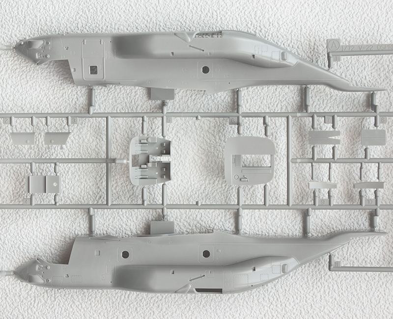Bell-Boeing V-22 Osprey (Оспри) — американский многоцелевой военно-транспортный конвертоплан, способный как к вертикальному взлету и посадке ( VTOL ), так и к укороченному взлету и посадке ( STOL ). Разработан для объединения функциональности обычного вертолета с дальними, высокоскоростными крейсерскими характеристиками турбовинтового самолета. V-22 эксплуатируется Соединенными Штатами и Японией. V-22 впервые поднялся в воздух в 1989 году и после длительной разработки был представлен в 2007 году. Конструкция сочетает в себе способность вертикального взлета вертолета со скоростью и дальностью полета самолета с фиксированным крылом. Технические данные: длина: 17,5м, размах крыла: 14м, высота: 6,73м, максимальная скорость: 565км/ч, скороподъемность: 11,8м/с, практический потолок: 7600м, максимальная дальность (с подвесными баками): 3600км, вооружение: стационарные - 1 пулемет М2 кал.7,62 и 1 пулемет ГАУ-17 кал.7,62 мм.