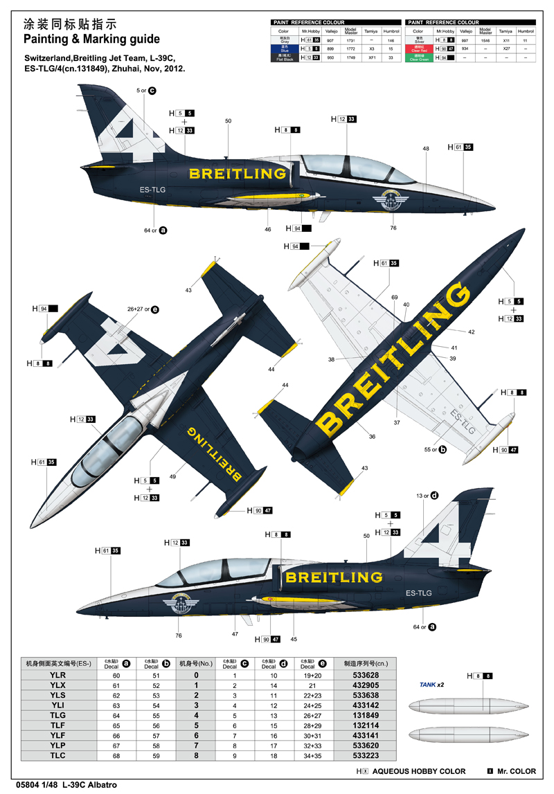 Аэро Л-39 «Альбатрос» (Aero L-39 Albatros, Элли) — чехословацкий учебно-боевой самолёт. Создан для замены учебно-тренировочного самолёта Aero L-29 Delfin. Совершил первый полёт 4 ноября 1968 года. В 1972 году был выбран основным учебно-тренировочным самолётом стран-участниц Организации Варшавского договора. Серийно производился чешской фирмой Aero Vodochody до 1999 года. Всего было построено 2868 L-39 и 80 L-59. Состоит на вооружении более чем 30 стран мира. L-39С — стандартная модификация учебно-тренировочного самолёта для начальной и основной лётной подготовки. Длина: 252,7 мм Размах крыльев: 197,1 мм Деталей 140+ Фототравление 1 рамка 8 литников
