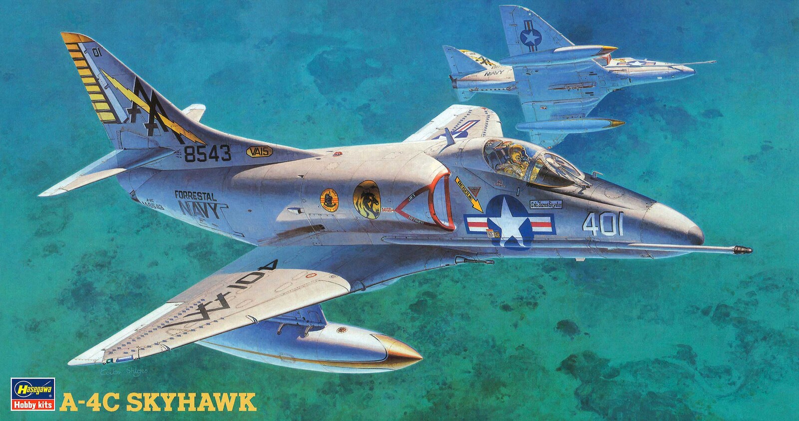 A-4 Skyhawk — американский одноместный дозвуковой палубный лёгкий штурмовик. Был разработан в начале 1950-х годов по заказу ВМС США и Корпуса морской пехоты США в качестве замены винтового самолета Douglas A-1 Skyraider. Skyhawk принимал активное участие в боевых действиях. ВМС США использовали этот тип в качестве основного легкого штурмовика во время войны во Вьетнаме. Skyhawk был основным штурмовиком ВВС Израиля как во время Войны на истощение, так и во время Войны Судного дня. Во время Фолклендской войны Skyhawk ВВС Аргентины бомбили корабли Королевского флота , потопив эсминец Тип 42 Coventry и фрегат Тип 21 Ardent . Skyhawk ВВС Индонезии использовались для контрповстанческих ударов в Восточном Тиморе . Skyhawk ВВС Кувейта участвовали в операции «Буря в пустыне» . На 2022 год, почти через семь десятилетий после первого полета самолета в 1954 году, некоторое количество Skyhawk остается на вооружении ВВС Аргентины и ВМС Бразилии. A-4C (A4D-2N) — ночной всепогодный штурмовик с возможностью маловысотного бомбометания. Радар AN/APG-53A в удлинённой носовой части фюзеляжа, автопилот, система маловысотного бомбометания LABS, новое катапультное кресло, двигатель Райт J65-W-16A (3175 кгс), на поздних самолётах более мощный J65-W-20 (3810 кгс на взлёте). Совершил первый полёт 21 августа 1958 года, серийно производился до 1962 года, построено 638 машин.