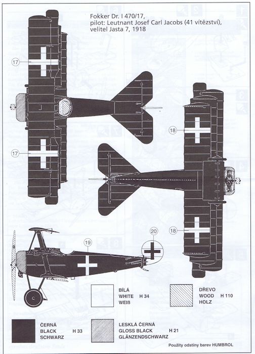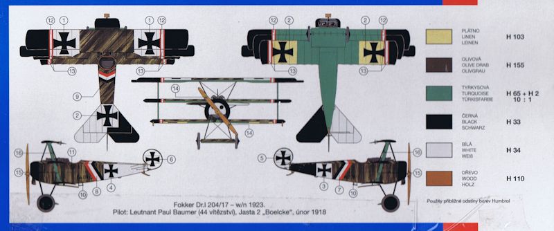 Модель в масштабе 1:44 Fokker Dr. I — триплан, лёгкий манёвренный истребитель конструкции компании Fokker. Стоял на вооружении военно-воздушных сил Германской империи во время Первой мировой войны. Истребитель производился в небольших количествах и имел много конструктивных недостатков. Стал широко известен как самолёт, на котором немецкий лётчик-ас Манфред фон Рихтгофен «Красный барон» выиграл свои последние 20 сражений.