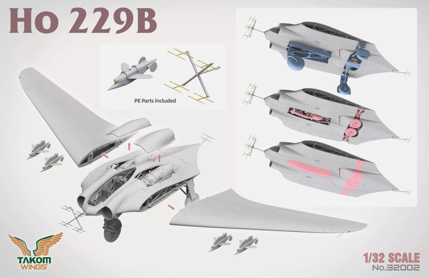 Сборная модель немецкого экспериментального ночного истребителя Прототип разрабатывался в период Второй Мировой войны, самолёт был спроектирован по схеме "летающее крыло" Фигуры пилотов и базовое фототравление в наборе. Сборка шасси возможна в выпущенном или убранном виде.