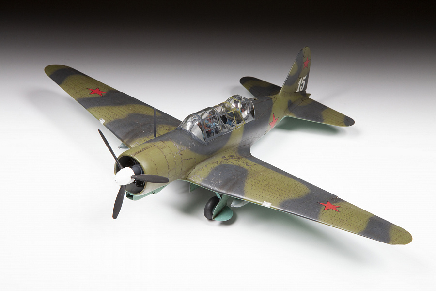 Историческая справка: Первые лёгкие бомбардировщики и разведчики Су-2 появились в войсках в марте 1940 года, а массовые поставки самолёта в боевые части начались в январе 1941 года. Советские лётчики высоко ценили надёжность этого самолёта - некоторые Су-2 после воздушных боёв подвергались ремонту по 20 и более раз, что говорит о высокой живучести конструкции самолёта. Набор деталей из пластмассы для сборки одной модели самолета.