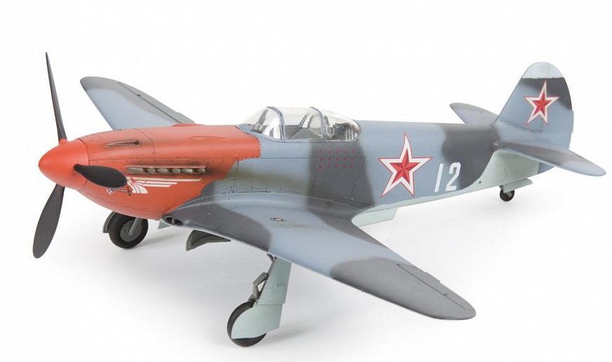 Историческая справка: Як-3 с двигателем ВК-105 ПФ-2 являлся самым лёгким и манёвренным среди всех самолётов воюющих сторон периода Великой Отечественной войны. Преимущества в скорости, скороподъёмности и манёвренности этого истребителя были настолько подавляющими, что немецкие лётчики предпочитали избегать встреч с Як-3. Потрясающая детализация внешних поверхностей и двигателя, отлично проработанное оружие, возможность сборки в двух вариантах (с закрытым, или открытым капотом). Набор деталей из пластмассы для сборки одной модели самолета.
