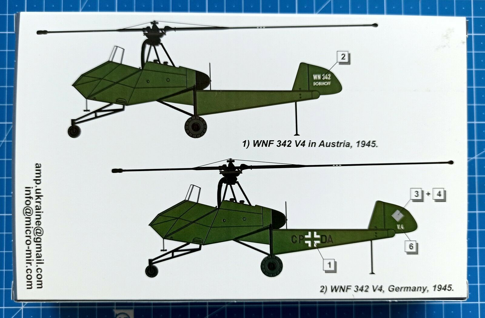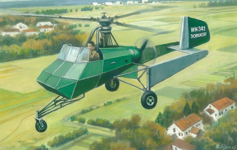 WNF-342 стал первым в мире вертолетом, в котором использовалась реактивная тяга для раскручивания ротора. Предпосылкой для его создания послужил интересный опыт инженера Доблхоффа, сконструировавшего весьма неординарную буровую установку. Система представляла собой ротор с тремя полыми лопастями, через которые подавалась специальная горючая смесь. При испытаниях, проходивших в 1942 году, выяснилось, что ротор раскручивался настолько сильно, что едва не отрывался от земли. Постройку вертолета, получившего обозначение WNF-342 (от сокращенного название завода-изготовителя - Wiener Neustadter Flugzeugwerke) начали незамедлительно. Схема полета была следующей - вначале на специальным каналам подавался поток сжатого воздуха, который смешивался с горючей смесью и выходил наружу через полые лопасти.