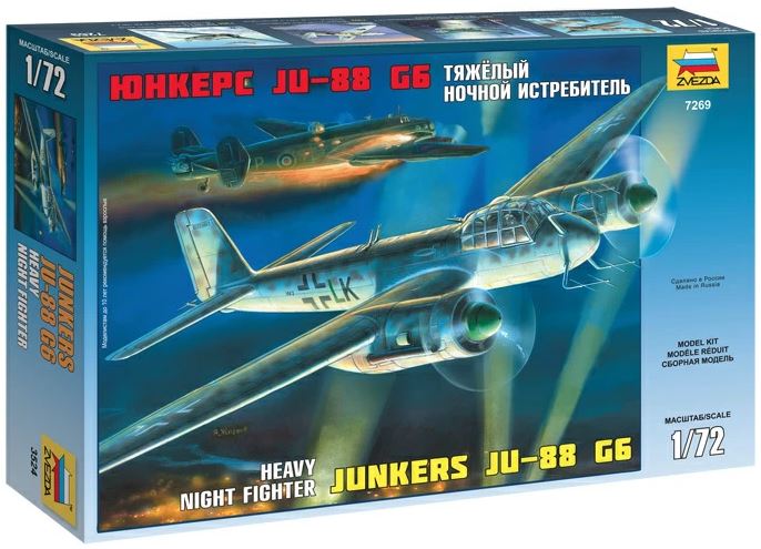 Сборная модель - Тяжелый ночной истребитель Юнкерс JU-88 G6. Историческая справка: Модификация Ju-88 G6 представляла собой дальнейшее развитие тяжелого ночного истребителя на базе бомбардировщика Ju-88. На истребителе устанавливалось новейшее радиоэлектронное оборудование для поиска цели, а мощное вооружение, состоящее из "Schrage musik", пушек MG 151 /20 и пулемета MG 131 оставляло самолету врага не много шансов скрыться. Так в ночь с 16 на 17 марта 1945 года Эрих Юнг в небе Нюрнберга на своем Ju-88 G6 уничтожил 8 британских бомбардировщиков за 20 минут боя. Набор деталей из пластмассы для сборки одной модели самолета. Масштаб 1:72 Детали х 60 Размер, см 15,9
