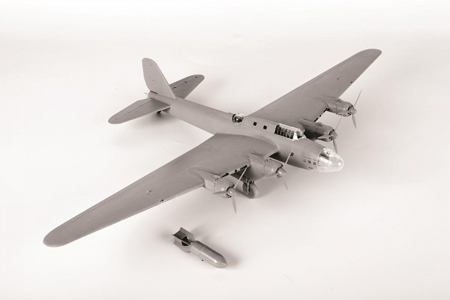 Сборная модель - Советский тяжелый бомбардировщик ТБ-7. Советский четырехмоторный бомбардировщик дальнего действия. Именно с помощью этих самолетов были осуществлены бомбардировки Берлина и Кенигсберга. Самолет производился с 1939 по 1945 годы. Набор деталей из пластмассы для сборки одной модели самолета.