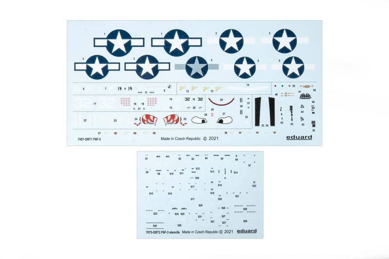 "Стендовая модель F6F-3 Hellcat от EDUARD, артикул 7457, масштаб 1:72. Этот набор представляет раннюю версию знаменитого американского палубного истребителя Grumman F6F-3 Hellcat, ставшего одним из самых успешных самолетов Второй мировой войны. Размеры собранной модели: длина — 14,2 см, размах крыльев — 18,1 см, высота — 5,5 см. Набор выполнен в линейке 'Weekend Edition', что означает упрощенную, но качественную комплектацию: детализированные пластиковые литники с точной проработкой поверхностей, прозрачный фонарь кабины (можно собрать открытым или закрытым) и лист декалей. Инструкция проста и понятна, что делает модель доступной даже для новичков. Варианты сборки включают выбор положения шасси — убранное или выпущенное. Предложено два варианта окраски: 1. Темно-синяя ливрея ВМС США с белыми звездами и тактическими номерами, характерная для ранних операций на Тихом океане. 2. Боевой камуфляж с трехцветной схемой (темно-синий, промежуточный синий и белый), использовавшийся в 1943 году.