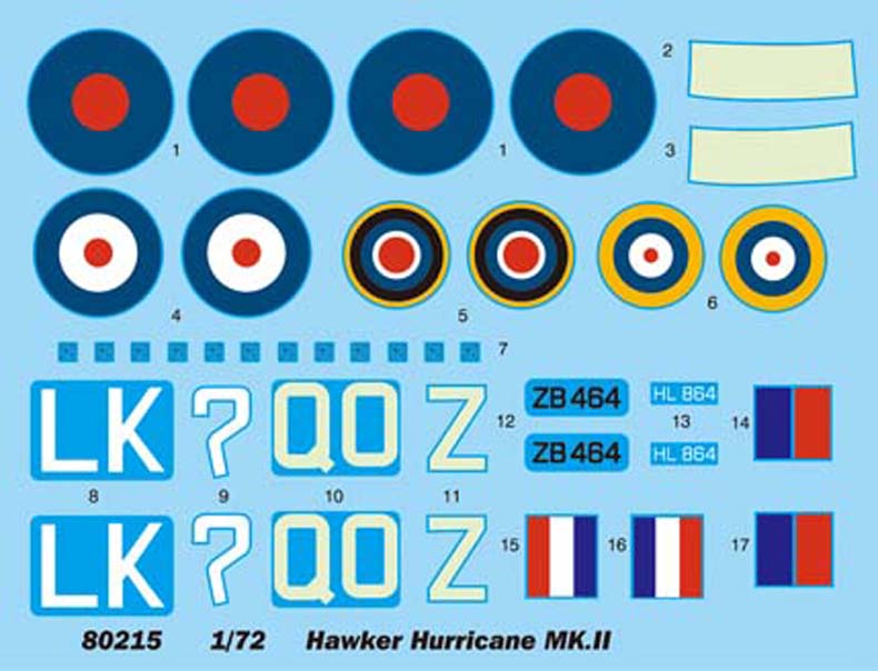 Хокер Харрикейн (англ. Hawker Hurricane) — британский одноместный истребитель времён Второй мировой войны, разработанный фирмой Hawker Aircraft Ltd в 1934 году. Различные модификации самолёта могли действовать как перехватчики, истребители-бомбардировщики (известные также как «Hurribombers») и штурмовики. Для действия с авианосцев существовала модификация, называемая Sea Hurricane. Всего построено более 14 500 экземпляров. Размеры модели Длина: 135 мм Размах крыльев: 167 мм Высота: 49 мм Всего пластиковых деталей 24 шт. Всего литников 4 шт.