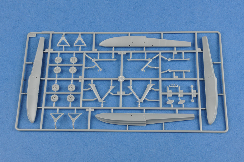 Грумман F4F «Уайлдкэт» (англ. Grumman F4F Wildcat) — американский одноместный палубный истребитель-бомбардировщик. Изначально проектировался как биплан, но в серию пошёл как свободнонесущий среднеплан (сказались требования к скоростным характеристикам). Прототип совершил первый полёт 2 сентября 1937 года. F4F-3S - В 1942 году авиация флота столкнулась с достаточно успешным применением японцами гидросамолётов A6M2-N, созданных на базе «Зеро». Флот заказал фирме Edo Corporation переделку F4F-3 (BuNo 4038) в гидросамолёт. Машину поставили на два больших поплавка посредством стоек с раскосами, усилили корпус, зашили ниши шасси алюминиевыми листами и установили на стабилизатор два дополнительных руля направления. Самолёт получил обозначение F4F-3S Wildcatfish. Первый полёт был совершен 28 февраля 1943 года. Испытания на открытой воде провели на авиастанции флота в Норфолке. После всех внесённых изменений максимальная скорость снизилась до 428 км/ч. Тем не менее, флот перезаказал партию из 100 F4F7 (BuNo с 12230 по 12329) как F4F-3S. Однако, к тому времени интенсивность боёв на Соломоновых и Алеутских островах снизилась, что позволило построить на островах полноценные аэродромы, после чего потребность в истребителях-гидросамолётах отпала. Заказанная партия была достроена в 1943 году в варианте обычного F4F-3, построенные самолёты использовалась для обучения пилотов-истребителей. Длина: 207 мм Размах крыльев: 240 мм Всего пластиковых деталей более 110 Всего литников 7 Фототравление