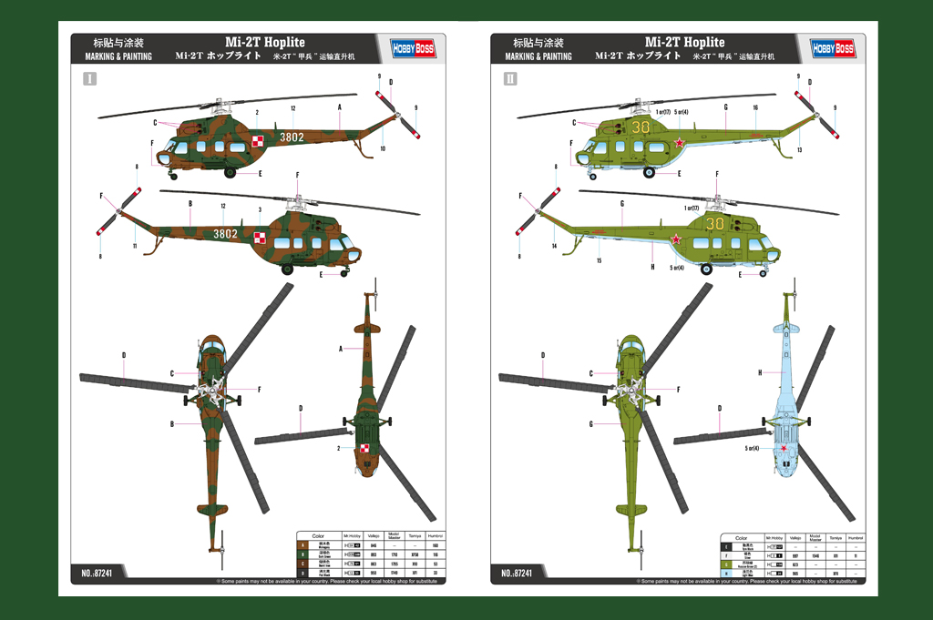 М&-2 (по классификации НАТО: Hoplite — «Гоплит») — советский многоцелевой вертолёт, разработанный ОКБ М. Л. Миля в начале 1960-х годов. В 1965 году было развёрнуто серийное производство в Польше. Широко применяется для выполнения множества гражданских и военных задач. До окончания производства в 1992 году построено свыше 5400 единиц. М&-2Т Транспортная модификация вертолёта М&-2. Была разработана польской фирмой «PZL Świdnik». М&-2Т (M&-2T, польск. transportowy) является базовым транспортным вертолётом, предназначенным для перевозки восьми человек или груза. В центральной части фюзеляжа размещены спинками друг к другу два трёхместных дивана. Ещё один пассажир может разместиться рядом с лётчиком, а другой — с правой стороны грузовой кабины (напротив двери). Над дверью грузовой кабины имеется лебёдка, способная поднимать 100—200 кг груза. Вертолёт может нести груз массой до 700 кг в грузовом отсеке или до 800 кг на внешней подвеске. Длина: 186 мм Диаметр ротора: 204 мм Всего пластиковых деталей более 80 шт Всего 4 литника