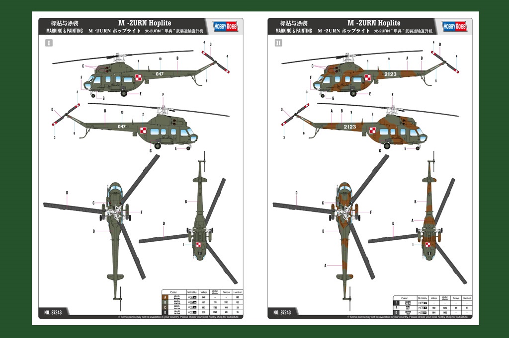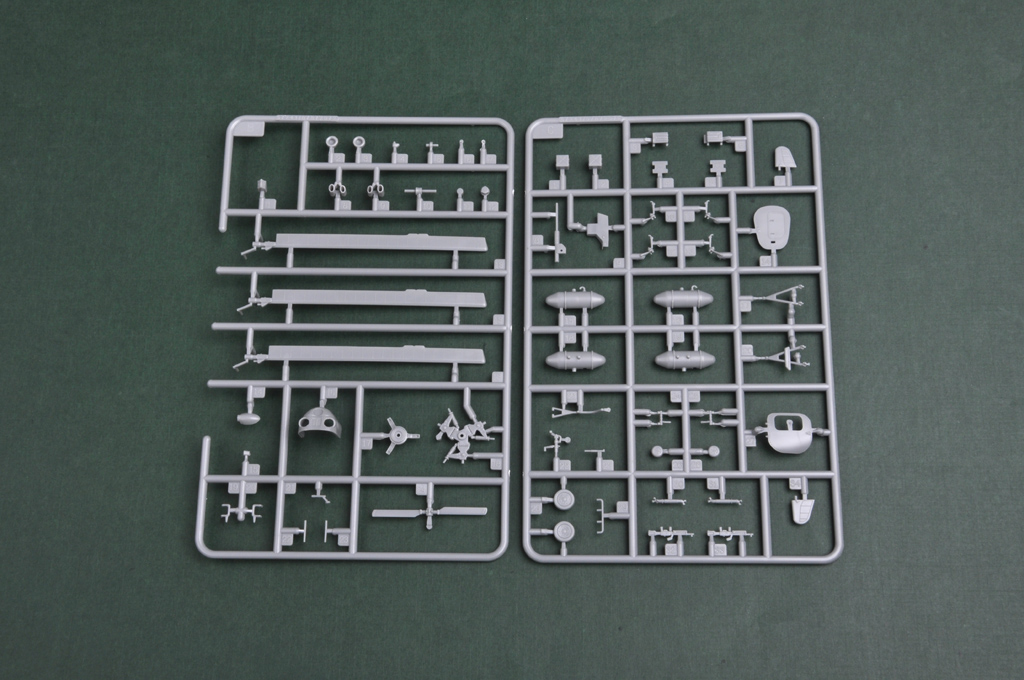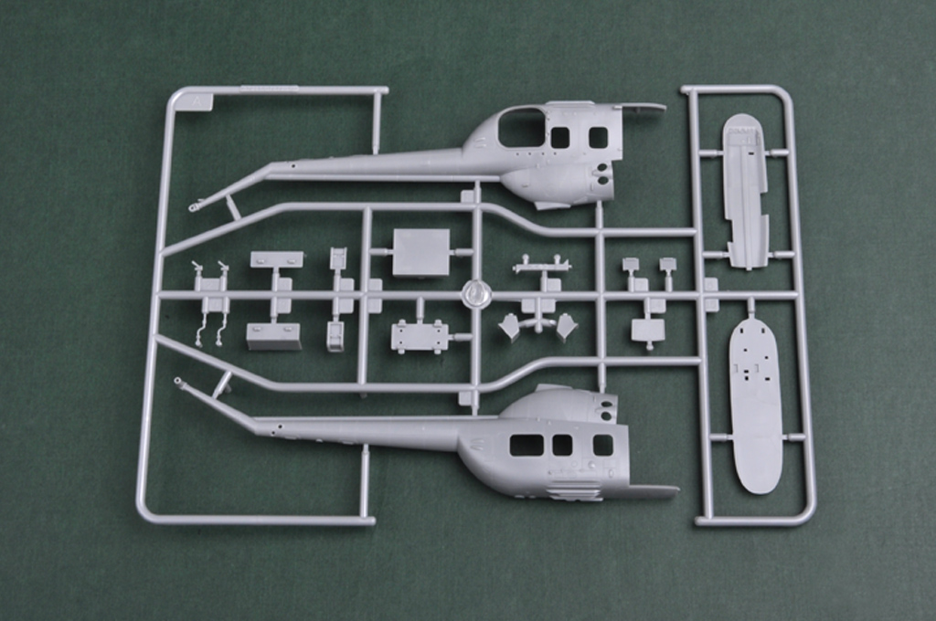 М&-2 (по классификации НАТО: Hoplite — «Гоплит») — советский многоцелевой вертолёт, разработанный ОКБ М. Л. Миля в начале 1960-х годов. По некоторым данным, первый в мире двухдвигательный турбовинтовой вертолет. В 1965 году было развёрнуто серийное производство в Польше. Широко применяется для выполнения множества гражданских и военных задач. До окончания производства в 1992 году построено свыше 5400 единиц. Из-за того, что производство данного вертолёта было завершено в 1992 году, на данный момент вертолёт не имеет современных систем безопасности, управления и проч. и не может составить конкуренцию современной авиационной технике. Длина: 186 мм Диаметр ротора: 204 мм Всего Пластиковых Деталей 90+ Всего 5 литников Комплект состоит из более чем 90 деталей, включая 7 прозрачных деталей