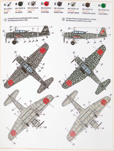 Ki-51 — одномоторный свободнонесущий моноплан цельнометаллической конструкции. Разработан группой инженеров: Кавано, Оки, Мицуно. Первый полёт прототипа состоялся в июне 1939 года. Принят на вооружение армии в 1939 года под наименованием штурмовик армейский тип 99. Кодовое имя союзников — «Соня» («Sonia»). Пластиковые детали - 170 Детали из фототравления - 63 Длина - 128мм Ширина - 168мм