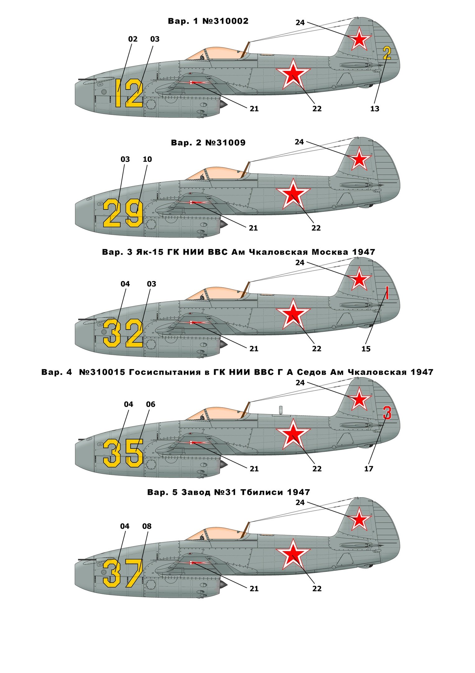 Яковлев-15 (по классификации НАТО: Feather — «Перо», первоначально Type 2) — первый реактивный истребитель, принятый на вооружение ВВС СССР. Разработан на базе Яковлев-3, совершил первый полёт 24 апреля 1946 года. В 1946—1947 годах построено 280 самолётов. В советских ВВС Яковлев-15 считался переходным самолётом и использовался только для переучивания лётного состава с поршневых истребителей на реактивные. 3Д печатная модель.