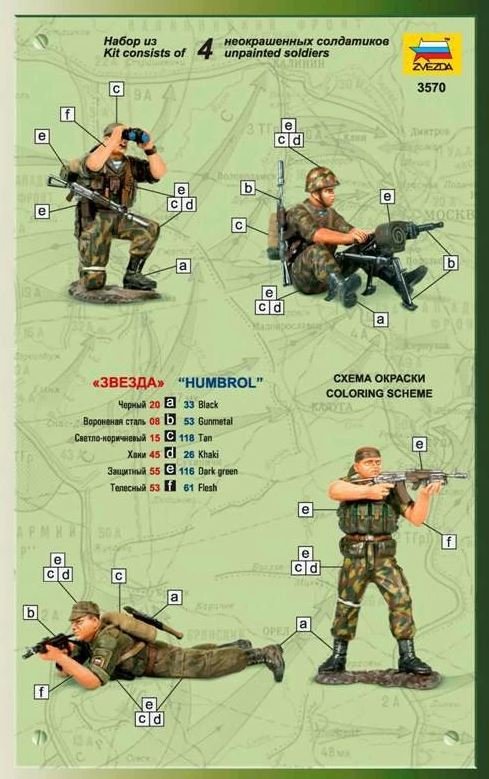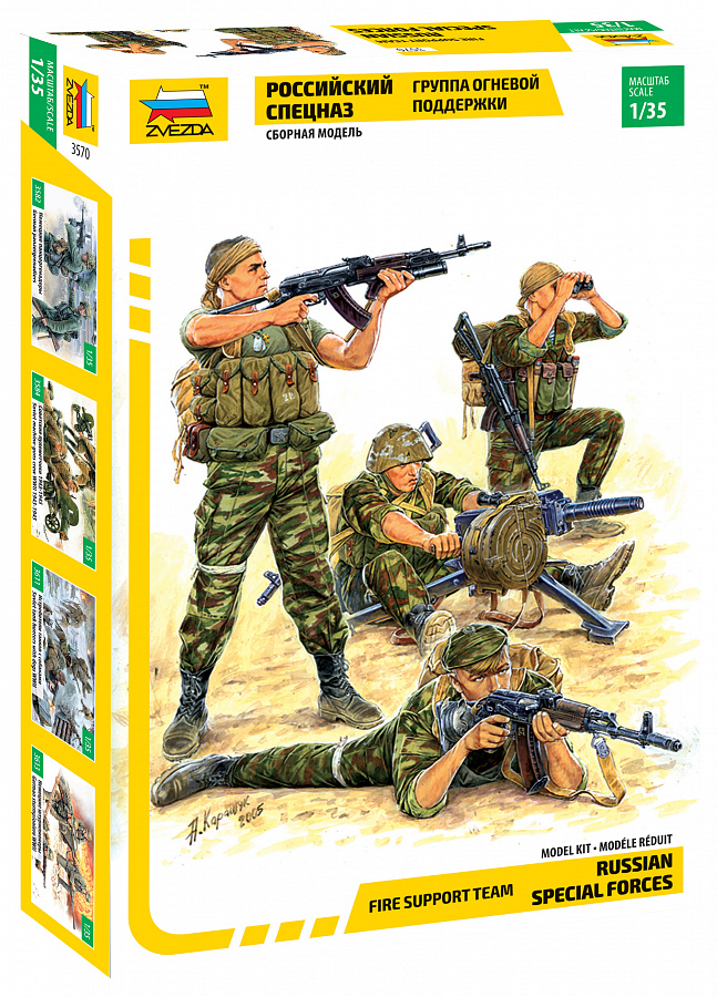 Сборные солдатики - Российский спецназ. Группа огневой поддержки. В набор входят фигуры бойцов подразделения специального назначения Российской Федерации. Группа вооружена автоматами Калашникова различных модификаций, автоматическим станковым гранатометом АГС-17.