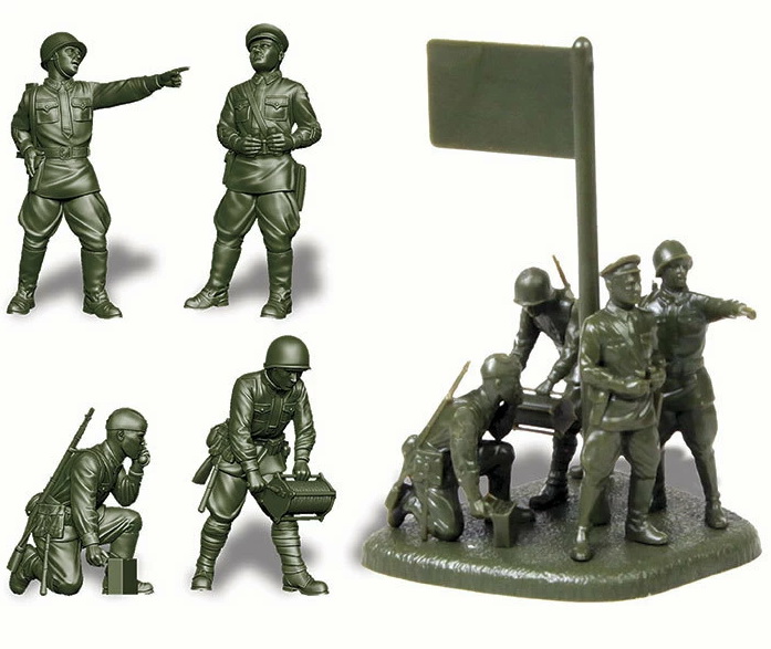 Сборные солдатики - Советский штаб 1941-1943. Набор порадует вас высокой исторической достоверностью, превосходной детализацией и простотой сборки. Игроки, собирающие советскую армию для игры "Великая Отечественная", смогут пополнить этим подразделением ряды своих войск. Историческая справка: В 1941 году штаб полка РККА состоял из 8 человек комначсостава, одного делопроизводителя в звании старшины и двух писарей-рядовых. В задачи штаба входило руководить подразделениями, входящими в состав полка, и осуществлять взаимодействие с соседними частями и вышестоящими штабами. По штату, штабные офицеры были вооружены главным образом пистолетами ТТ. Состав набора: 4 неокрашенные фигуры 1 флаг отряда 1 инструкция по сборке Сборка осуществляется без использования клея.