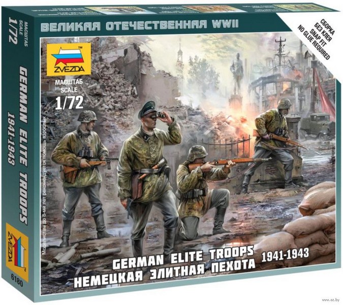 Сборные солдатики - Немецкая элитная пехота 1941-1943. Историческая справка: Пехота, как самый древний вид войск, решала задачи, с которыми не справлялись бронетанковые и другие войска. И как в любой армии, в вермахте были свои «элитные» пехотные подразделения и даже войска. В основной своей массе, «элитными» становились за боевые заслуги или уже на этапе формирования набирались из отборных кадров. Порою сам по себе вид войск (например, парашютисты люфтваффе) причислялись к воинской элите из-за чрезвычайно высоких критериев отбора личного состава и характера действий. Состав мини-набора: 5 неокрашенных фигур 1 отрядная подставка с флагом 1 инструкция по сборке Сборка осуществляется без использования клея.