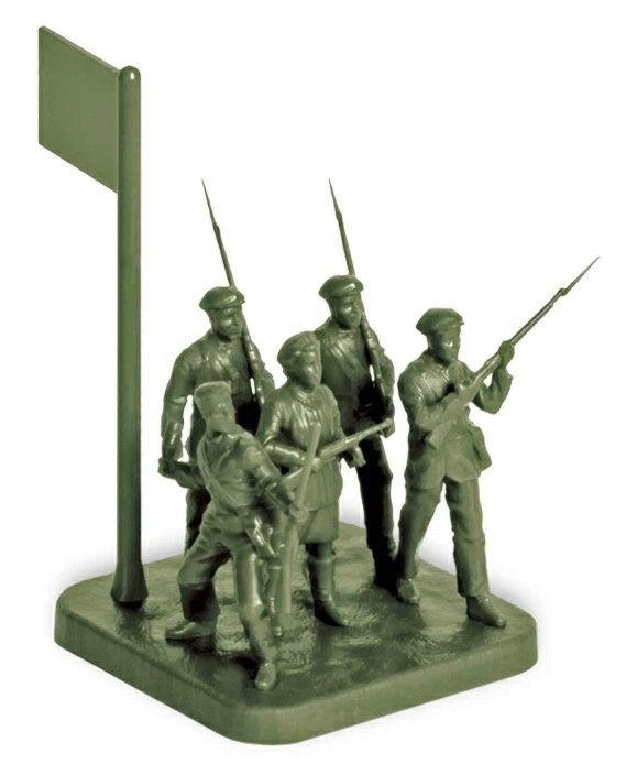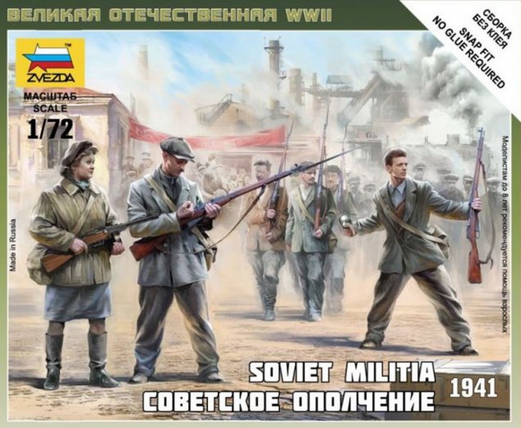 Сборные солдатики - Советское ополчение 1941. Историческая справка: Великая Отечественная война началась стремительно и неожиданно. В короткие сроки были потеряны Белоруссия и Прибалтика, советские войска отступали к Киеву, враг стоял у ворот Смоленска. В это сложное время миллионы советских людей спешили попасть на фронт. Многочасовые очереди в военкомат стали обыденным зрелищем. Негодные к боевой службе также хотели встать на защиту Родины. 4 июля 1941 года постановлением Государственным Комитетом обороны был объявлен набор в дивизии народного ополчения. В июле, только в Москве, было сформировано и отправлено на фронт 12 дивизий народного ополчения. Ополченцы проходили необходимую боевую подготовку, получали вооружение. Однако, на всех вооружения не хватало, поэтому, в ход шли трофейные винтовки и гранаты. В Осаждённом Ленинграде многие рабочие батальоны уходили в бой в гражданской одежде. В основном, в ополчение шли те, кто по каким-то причинам не мог вступить в действующую армию, весь цвет московской и ленинградской интеллигенции добровольно ушёл на фронт. Изначально дивизии предназначались для строительства оборонительных сооружений на Можайской линии обороны. Но из-за резкого ухудшения обстановки, дивизии были брошены в бой. Одна из них отличилась при взятии города Ельни. Почти все дивизии московского ополчения погибли в окружении под Вязьмой, но 3 дивизии со временем стали гвардейскими и окончили войну в Германии. Состав набора: 5 неокрашенных фигур 1 отрядная подставка с флагом 1 инструкция по сборке Сборка осуществляется без использования клея.
