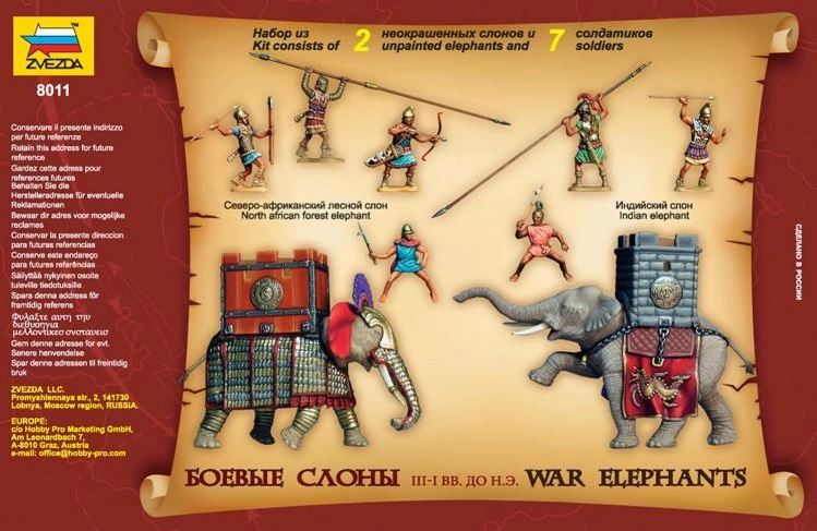 Боевые слоны III-I вв. до н.э. Набор "Боевые слоны" может быть использован как составная часть игровой системы "Эпоха битв". Каждая фигурка соответствует реальному историческому воину со свойственными ему характеристиками. Характеристики слонов указаны в книге правил. Ознакомившись с правилами игры "Эпоха битв" и каталогом, Вы сможете прикоснуться к увлекательному миру военно-исторической игры. Спрашивайте книгу правил в магазинах Вашего города. Набор состоит из 2 неокрашенных боевых слонов и 7 солдатиков.