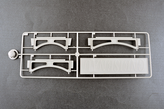 «Гнейзенау» (нем. Gneisenau) — линкор (также может определяться как линейный крейсер) типа «Шарнхорст» ВМС Германии во Второй мировой войне, названный в честь фельдмаршала и реформатора прусской армии графа Августа Вильгельма фон Гнейзенау и в память о броненосном крейсере времён Первой мировой войны «Гнейзенау», потопленном в сражении у Фолклендских островов в декабре 1914 года. В большинстве случаев «Гнейзенау» вёл боевые действия вместе со своим систершипом «Шарнхорстом». Длина модели: 1175 мм Ширина: 150 мм Всего Деталей 1420+ Металлические детали - якорная цепь, вал Фототравление 8 рамок Всего литников 24 литника, корпус, надстройка и палубы - включает в себя 2 гидросамолета Ar196