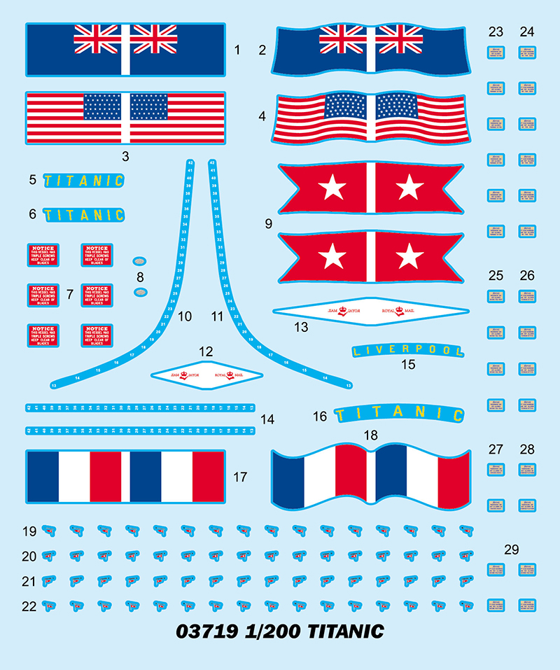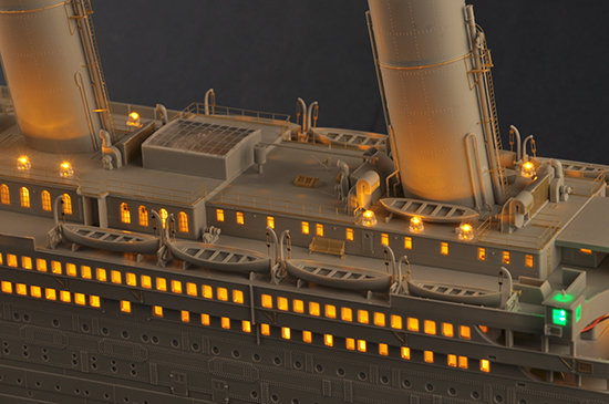«Тита́ник» (англ. Titanic) — британский трансатлантический пароход, второй лайнер класса «Олимпик» компании «White Star Line». Крупнейшее пассажирское судно в мировой истории в 1912—1913 годах. Во время первого рейса затонул в северной Атлантике, столкнувшись с айсбергом в ночь с 14 на 15 апреля 1912 года. Длина: 1347 мм Ширина: 144,6 мм Всего Деталей 1280+ Металлические якорные цепи Детали с фототравлением 7 рамок Всего 19 литников, корпус,палубы и подставка - Узор палубы точно прорисован. - подставка в комплекте - светодиодное освещение USB