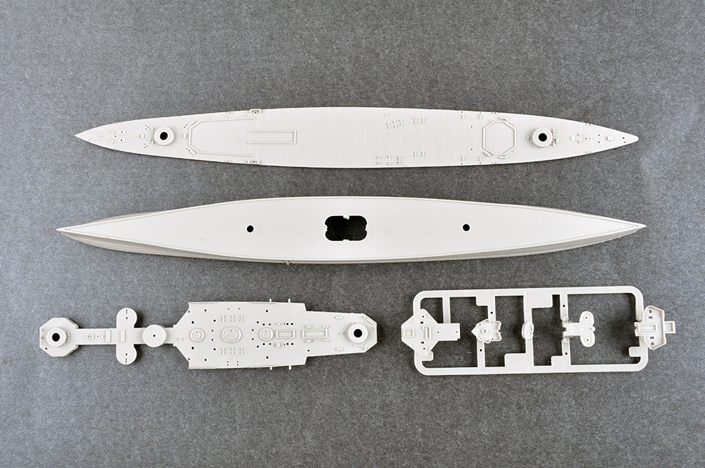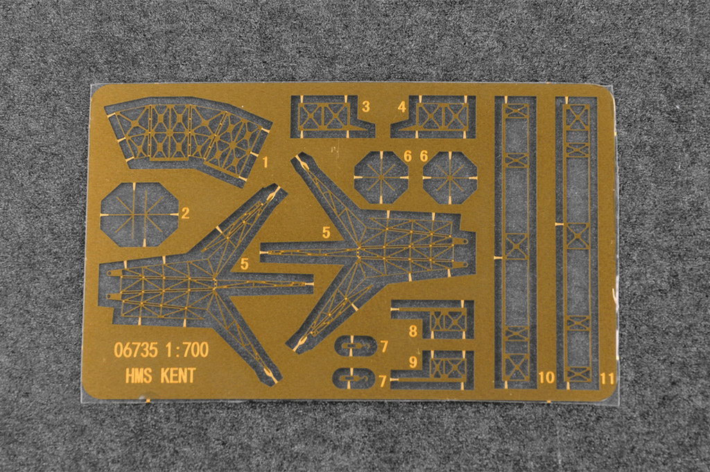 HMS Kent (54) — британский тяжёлый крейсер межвоенного периода и Второй мировой войны. Киль этой установки был заложен в ноябре 1924 г., спуск на воду состоялся в марте 1926 г., а поступление на вооружение Королевского флота — в июне 1928 г. Общая длина корабля на момент спуска на воду составляла 192 метра, общая ширина – 20,9 метра, а полное водоизмещение – около 13 700 тонн. Максимальная скорость составляла около 31,5 узла. Палубное вооружение на момент спуска на воду включало: 8 203-мм орудий, расположенных в четырех башнях по два орудия в каждой, 4 одиночных 102-мм орудия, 4 одиночных 40-мм зенитных автомата и два счетверенных 533-мм торпедных аппарата. HMS Kent (54) — один из британских тяжёлых крейсеров типа «Каунти». Агрегаты этого типа строились в соответствии с положениями Вашингтонского договора 1922 г., но имели хорошее основное вооружение, хорошее бронирование и хорошую максимальную скорость. Они в значительной степени заменили крейсера времен Первой мировой войны в Королевском флоте. Одним из кораблей этого класса был HMS Kent (54), построенный на верфи Chatham Dockyard в графстве Кент. Он начал свою службу в Королевском флоте, представляя британский флаг на Дальнем Востоке в составе 5-й эскадры крейсеров. В 1929-1930 годах его перестроили, получив в числе прочего: новую систему управления зенитным огнем. Однако в 1937 году он получил модернизированную броню и внесены изменения в машинное отделение. В конце 1939 г. HMS Kent участвовал в поисках немецкого карманного линкора Admiral Graf Spee, а с начала до лета 1940 г. действовал в Индийском океане. Со второй половины 1940 года действовала в Средиземном море, принимая участие, в том числе, в сопровождении конвоев на Мальту. В ходе выполнения этих задач он получил серьезные повреждения и почти весь 1941 год провел в ремонте и модернизации. На рубеже 1941-1942 годов служил в Северной Атлантике, обеспечивая прикрытие конвоев PQ-10 и PQ-16. В июле 1944 года участвовал в боях против линкора «Тирпиц». Крейсер HMS Kent выведен из эксплуатации и переведен в резерв флота. Позже он использовался как корабль-мишень, а в 1948 году был продан на верфь на слом. Краткое описание модели Длина: 274,2 мм; Ширина: 31 мм Всего частей 210+ Рамки фототравления: 1 шт Всего литников: 10 шт, корпус и палубы