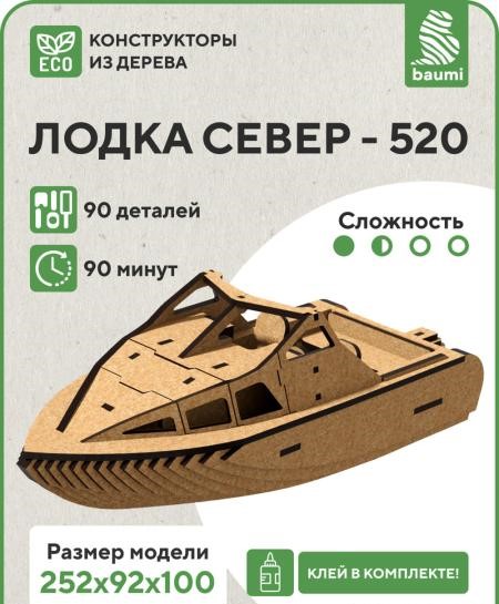 Сборная модель Лодка Север-520 Материал дерево В комплект входят детали для сборки, инструкция, клей