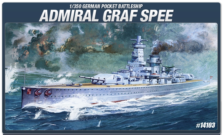 Admiral Graf Spee — немецкий тяжёлый крейсер, также известный как карманный линкор, киль которого был заложен в 1931 году и спущен на воду в июне 1934 года. В январе 1936 года линкор поступил на службу в ВМС Германии (нем. Kriegsmarine). Корабль имел длину 186 м, ширину 21,6 м и полное водоизмещение 16 200 тонн. Максимальная скорость Admiral Graf Spee составляла около 28-29 узлов. Основное вооружение составляли 6 280-мм орудий в двух трехорудийных башнях, вспомогательное вооружение включало: 8 150-мм орудий или 6 105-мм орудий. Admiral Graf Spee был одним из трех кораблей класса Deutschland, спущенных на воду в 1930-х годах. Корабли этого типа теоретически строились в соответствии с положениями Версальского договора 1919 г., который налагал на немецкие корабли максимальное водоизмещение, но фактически их полное водоизмещение явно превышало эти пределы. Части типа «Дойчланд» строились таким образом, чтобы иметь подавляющее преимущество в артиллерийском бою с любым британским или французским тяжелым крейсером. Боевая карьера адмирала Графа Шпее началась во время Гражданской войны в Испании (1936-1939). Однако его участие во Второй мировой войне было очень недолгим — 21 августа 1939 года он отплыл в Южную Атлантику, а в конце сентября того же года ему было приказано атаковать каждое торговое судно союзников. С 30 сентября по 7 декабря 1939 г. он потопил 9 английских торговых судов. 13 декабря 1939 г. он был обнаружен в устье реки Ла-Плата кораблями союзников (так называемая эскадрилья «Г»). Там он провел короткий бой с союзными войсками, после чего был блокирован ими в порту. В результате 17 декабря 1939 года экипаж самостоятельно потопил его.