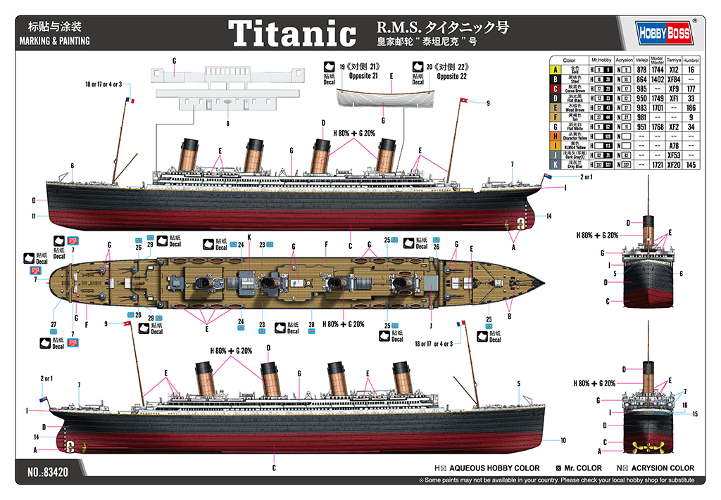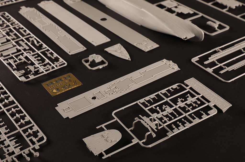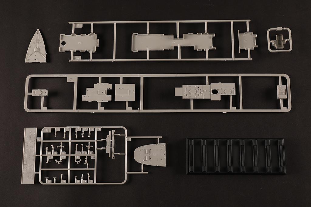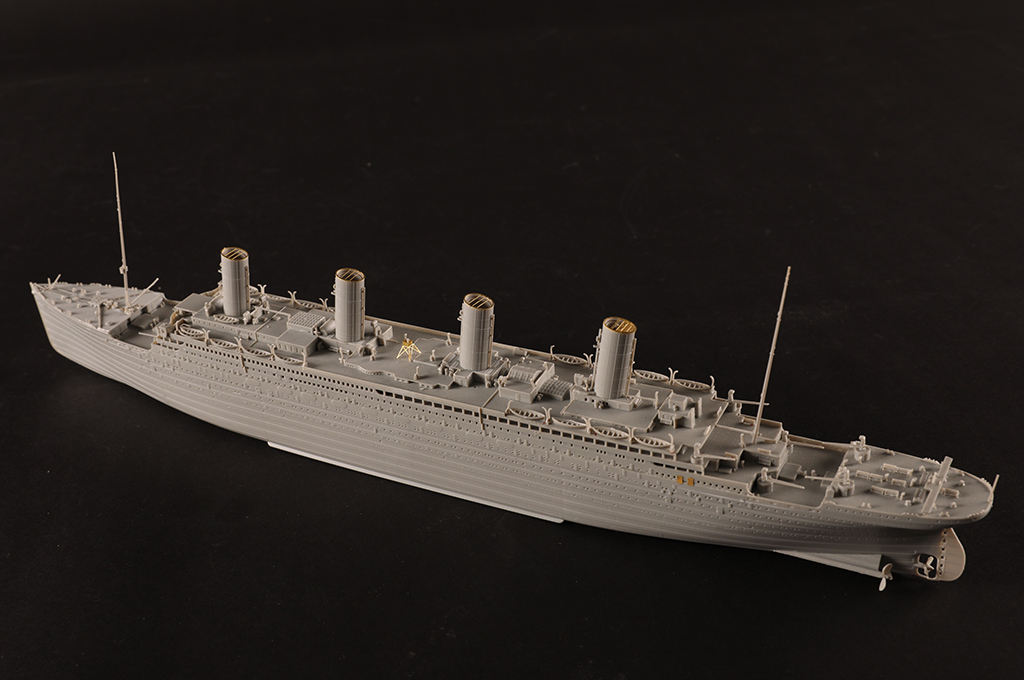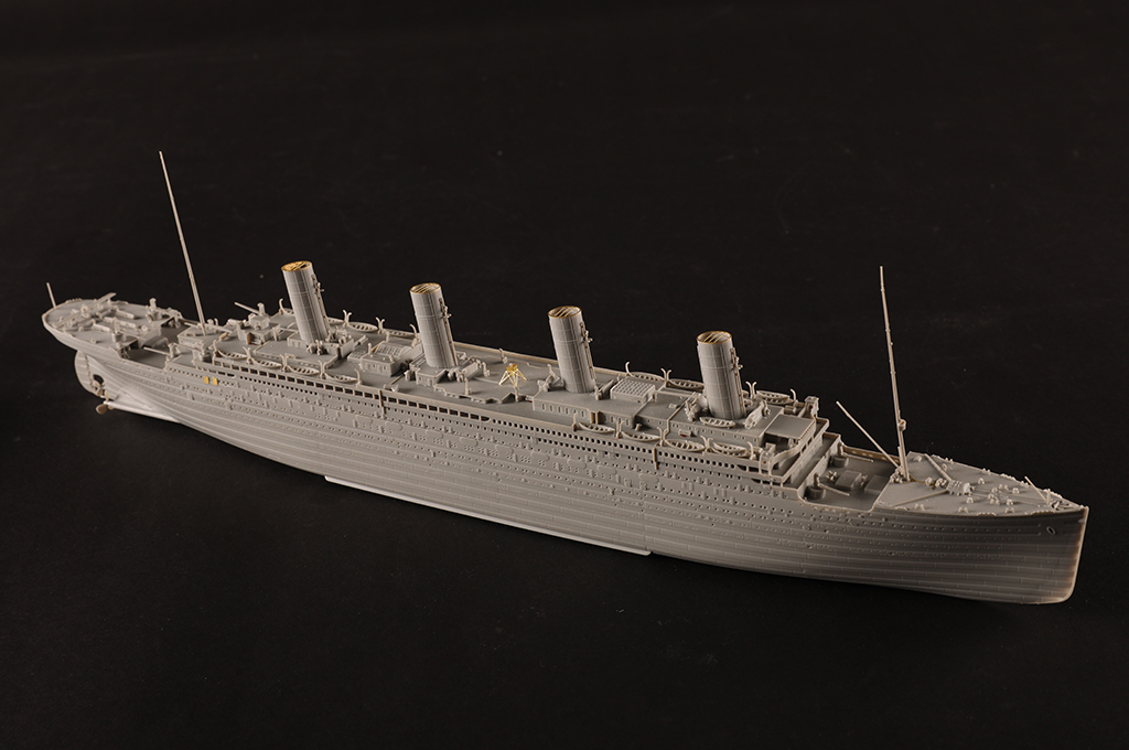 Судно RMS Titanic было построено в Белфасте, Северная Ирландия, на верфи Messrs. Harland & Wolff. Строительство "Титаника" началось 31 марта 1909 года с закладки киля и продолжалось вплоть до его первого рейса. Во время своего первого рейса "Титаник" был крупнейшим океанским лайнером в мире. Он был построен с учетом множества мер безопасности и считался непотопляемым. Днем 10 апреля 1912 года "Титаник" вышел из Саутгемптона, Англия, в свой первый рейс и направился в Шербур, Франция, затем в Квинстаун, Ирландия, прежде чем начать пересечение Северной части Атлантического океана в направлении предполагаемого пункта назначения - Нью-Йорка в Соединенных Штатах. Ясной безлунной ночью 14 апреля, в 11:40 вечера, "Титаник" столкнулся с айсбергом и начал погружаться носом. К 2 ночи большая часть спасательных шлюпок "Титаника" исчезла, но на борту обреченного корабля осталось много людей. По мере приближения последних мгновений "Титаника" его нос погрузился в ледяные воды Атлантики, корма поднялась из воды, и непотопляемый корабль развалился надвое. Ранним утром 15 апреля 1912 года, почти через 2 часа 40 минут после столкновения с айсбергом, Титаник исчез под поверхностью Атлантического океана . Его обломки оставались потерянными до 1 сентября 1985 года, когда его искореженный корпус был обнаружен на глубине 12 480 футов. В ту роковую ночь на борту "Титаника" находилось 2208 пассажиров и членов экипажа, и когда он затонул, то унес жизни 1496 человек. "Титаник" стал одной из самых страшных морских катастроф в истории и одним из самых известных кораблекрушений. Размеры модели Длина: 387,5 мм Ширина: 41,2 мм Всего пластиковых деталей 430+ Всего 10 литников , корпус и палубы Детали с фототравлением 1 шт.